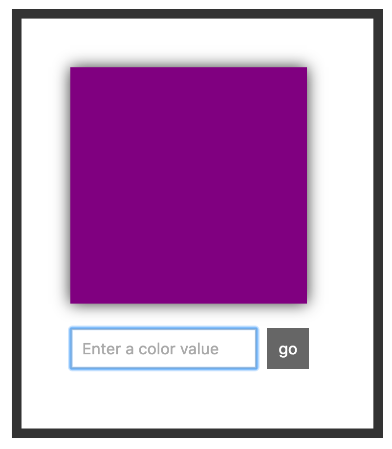 现在,如果在提交了颜色后,能立即清除已有的颜色,并且将焦点返回到文本框,是不是更好?这意味着如果我们提交了一个 purple 颜色值,你所看到的会是如下这样: